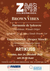 Freides, de 24. Oktober 2025, heeschen d'Zolwer Musek an d'Hesper Musek iech um 20:00 Auer am Artikuss wëllkomm, fir ee weidere Concert an eiser